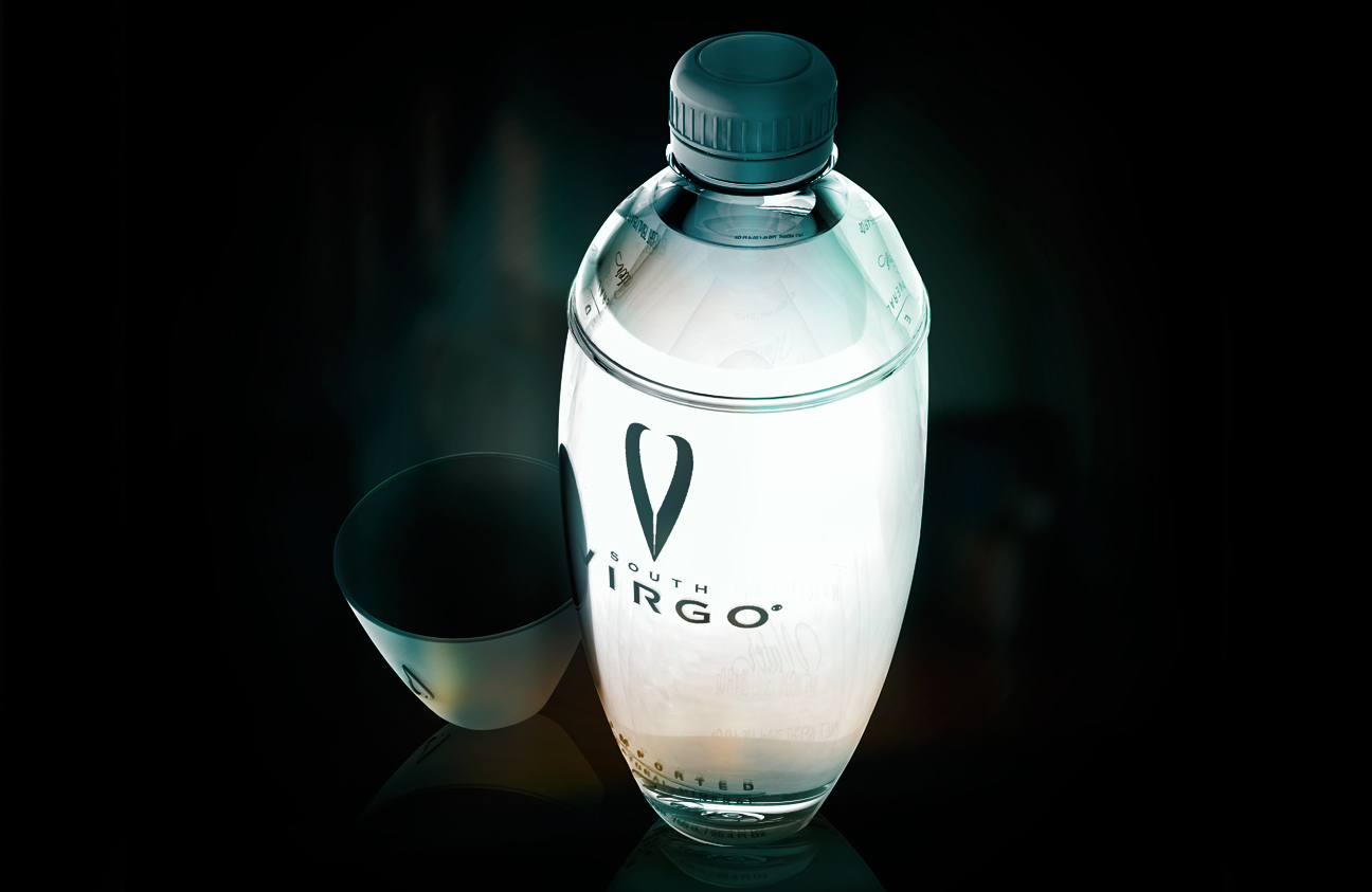 The SOUTH VIRGO bottle uses simple visual vocabulary. The curving sides represent the upward movement of a bubble rising the surface. This distinctive form communicates the feeling of modern design. The unique concept approach provides a physical and visual foundation which gives balance to the overall design. This complex and evolutionary packaging defines the bottle design as modern and distinctive.